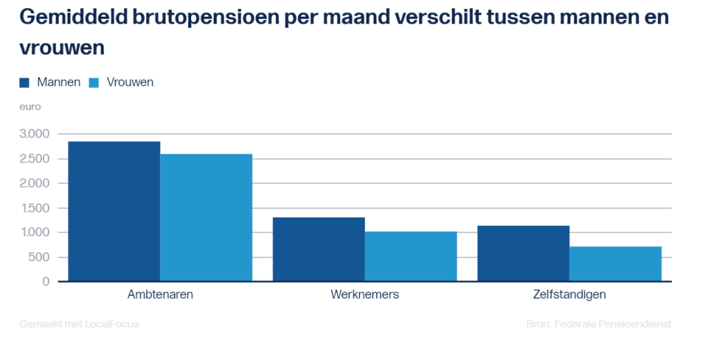 September 2021… Het gaat weer volop over de pensioenen in België. En zoals zo vaak worden er in staafdiagrammen een vergelijking gemaakt van de pensioenen tussen drie categorieën : ambtenaren, werknemers, zelfstandigen. Onderstaande grafiek staat vermeld op https://www.vrt.be/vrtnws/nl/2020/01/16/pensioenen-de-cijfers-en-de-politieke-voorstellen/