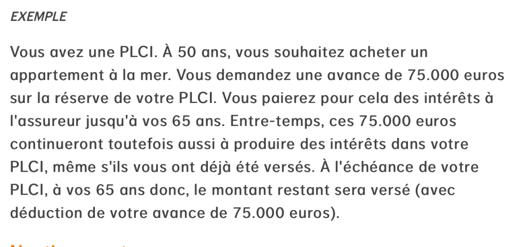 Le site Web ajoute un exemple. Un indépendant peut donc retirer une partie de la pension via le PLCI avant la date effective de la retraite. En effet, même si l’argent a déjà été retiré pour l’achat d’un bien immobilier, cet argent génère toujours des intérêts.