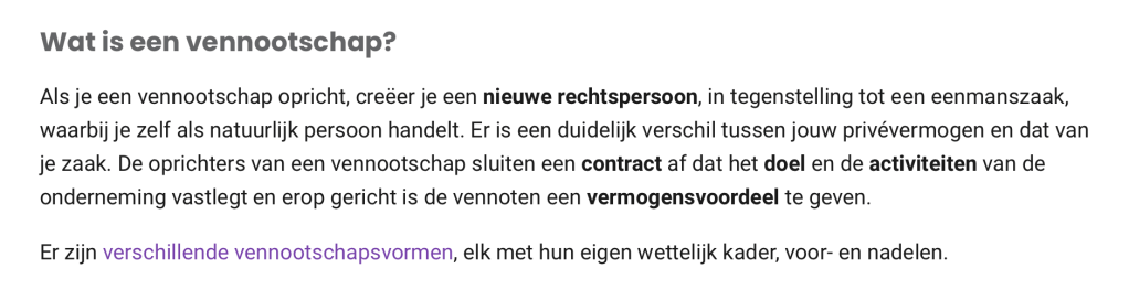 Je vindt hierover mee informatie op https://www.liantis.be/nl/zelfstandig-worden/ondernemingsvorm-kiezen/eenmanszaak-of-vennootschap